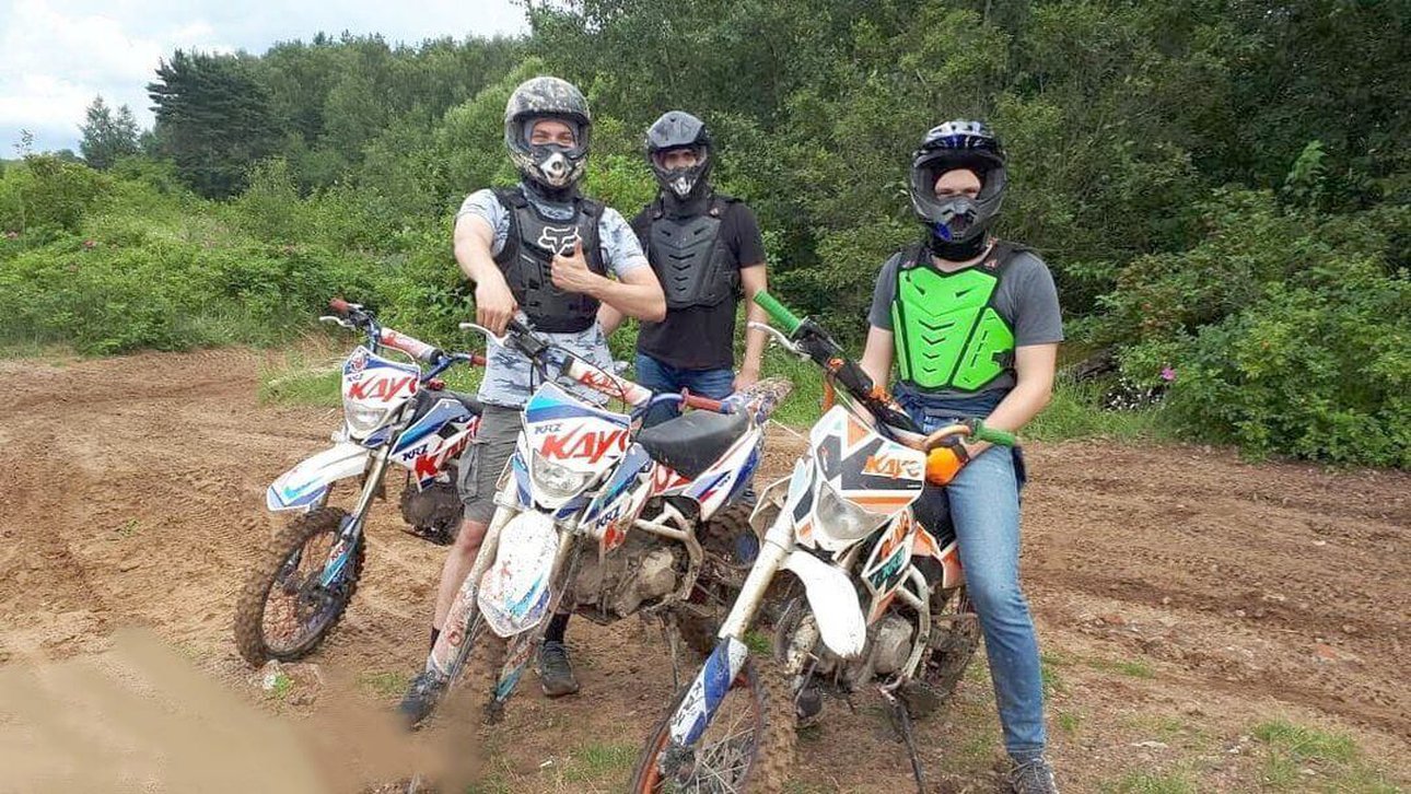 Никогда не сидел(а) на байке? Отлично. Это для тебя. Для лёгкого старта доступна аренда питбайков с полной экипировкой — шлем, подшлемник, перчатки, панцирь, наколенники; по желанию выдадим мотоботы и грязезащитный костюм. Перед выездом ты разберёшь основы на учебной трассе, а затем сможешь покататься на кроссовом питбайке в своём темпе — без лишней спешки и суеты. На пути инструктор рядом, технику проверяем ежедневно. Направления подбираем по уровню: от мягкого знакомства до бодрых лесных троп. Ездить можно с 16 лет, требуется только паспорт — права не нужны. Сезон: апрель—ноябрь (кроме периода глубокого снега). Одновременно выезжает до семи участников — удобно прийти парой или небольшой командой. На площадке — современные KAYO KRZ125 и WELS RT140E, тёплая раздевалка и комната ожидания, зона отдыха, где можно оставить ребёнка с сопровождающим взрослым. Снимайте фото сами — попросите инструктора помочь поймать лучший ракурс, чтобы на фото было видно: это было по‑настоящему.